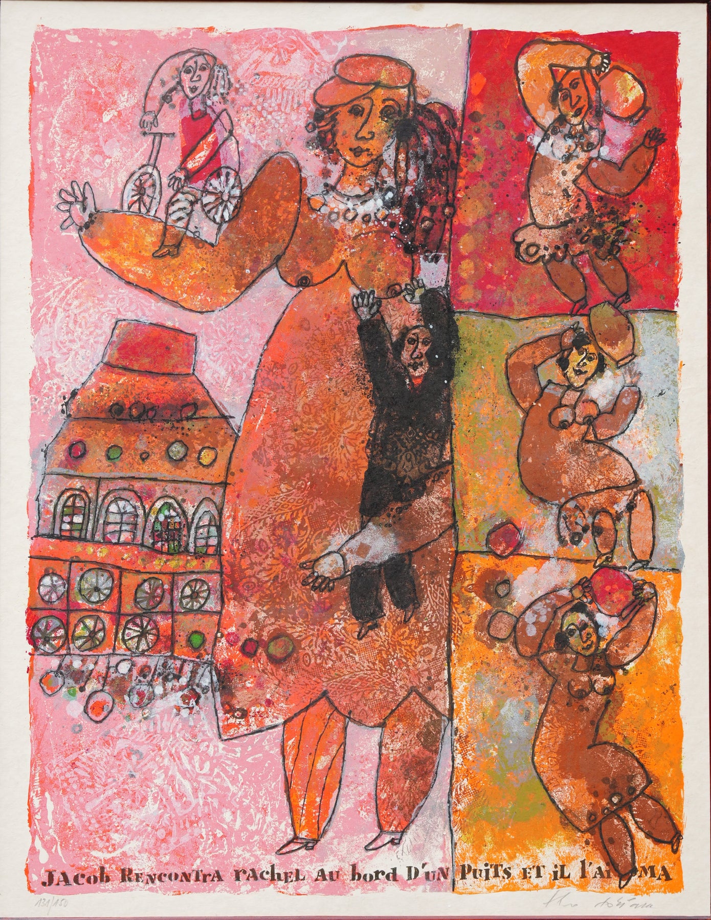 Theo Tobiasse "Jacob rencontra Rachel au bord d'un puits et il l'aima" – Original Signed Lithograph